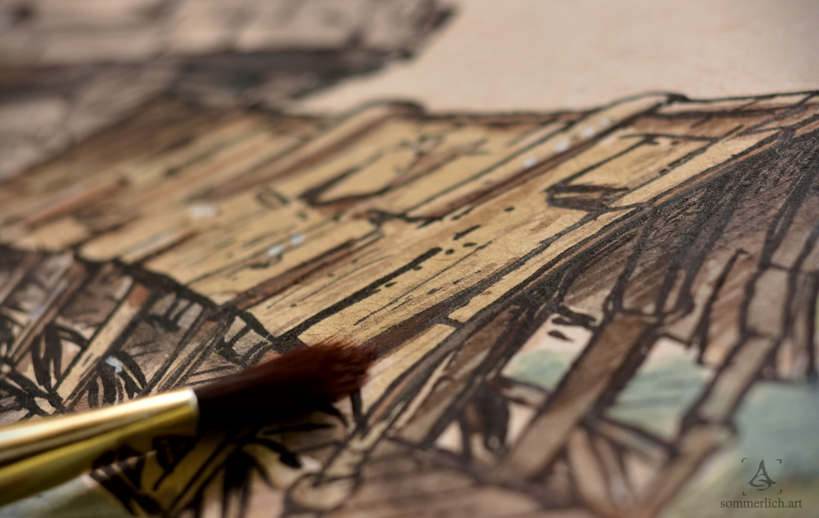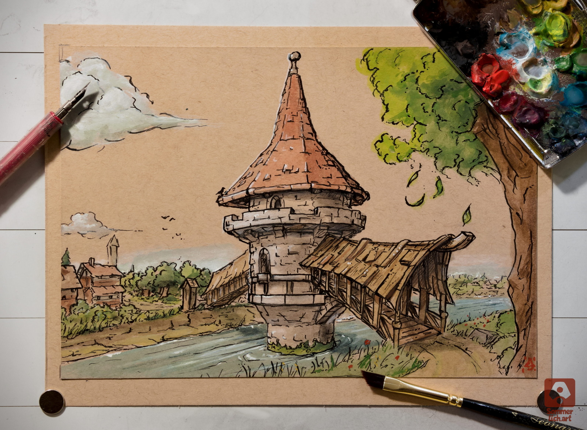 After a long time I have now managed to make a separate page for the illustration of my little "bridge tower", because I have already painted in August 2022. I hope you enjoy it as much as I did, because it was a lot of fun to paint it, especially back then when the pandemic just wouldn't end.